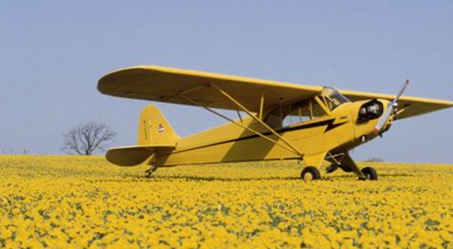 the middle of the field, stood a bright yellow, later I would learn, Piper J-3 canvas covered kit plane, shining in the sun. Dad shook hands with the man and there was a discussion that lasted for a while.